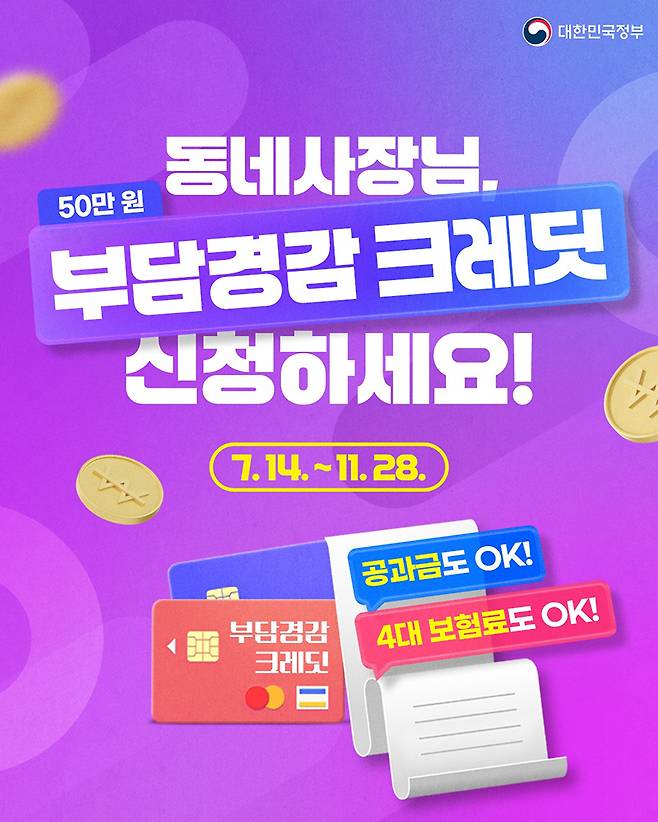 동네사장님, 50만 원 부담경감 크레딧 신청하세요