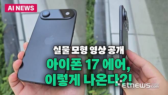 애플이 올 가을 새롭게 출시하는 초박형 아이폰 '아이폰17 에어' 디자인을 살펴볼 수 있는 모형 영상이 공개됐다.