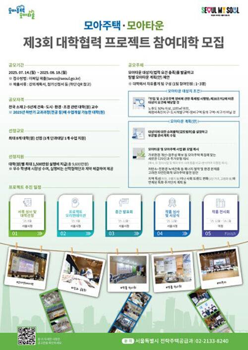 서울시는 '제3회 대학협력 모아주택· 모아타운 프로젝트'에 참여할 전국 건축·도시·환경·조경 관련 대학(원)을 모집합니다.