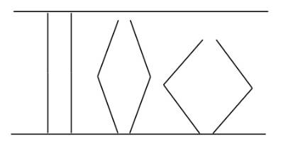위 그림은 길이가 같은 선을 두 개 붙여놓은 것이다. 우리가 알고 있는 오다리 형태의 두 번째, 세 번째 선모양은 맨 왼쪽 곧은 선에 비해 전체 길이가 줄어들어 있는 것을 볼 수 있다. 즉, 오다리가 심한 사람일수록 수술 후의 키는 더 커질 수 있다는 것이다.