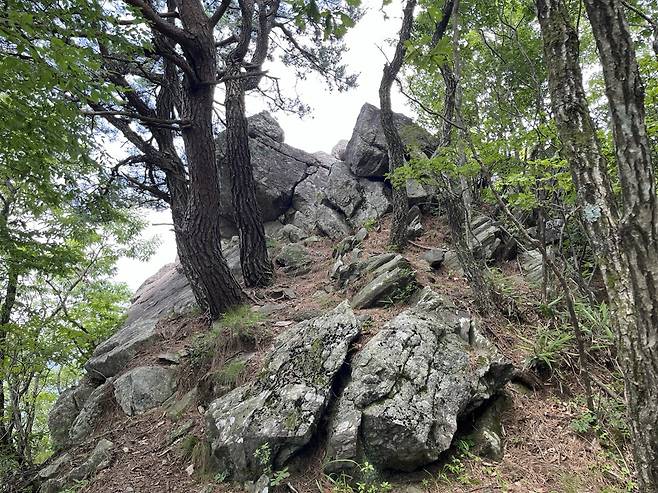 어느덧 정오를 넘었다. 지장재 고갯마루에서 배낭을 풀고 점심 도시락을 폈다. 큼직한 산개미들이 가부좌로 앉은 무릎 위로 올라왔다. 냉기로 가득한 고갯마루 그늘에서 한참을 머물렀다. 태조 이성계 기도터를 향하여 능선길 오르막을 올랐다.