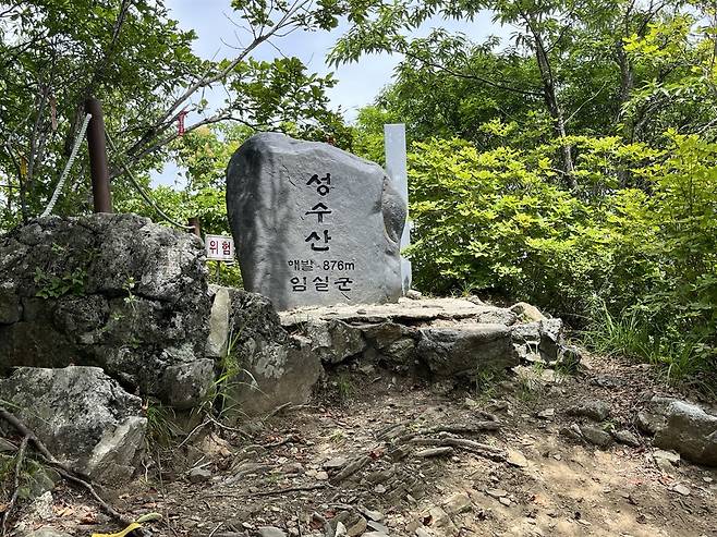 태조 기도터의 안내판이 새롭게 정비되어 있었다. 성수산 '905m 고지'를 '성수산 905m 상봉'으로 표기하고 있었다. 반가웠다. 기자는 지난해 3월 성수산 '905m 고지'를 성수산 '태조봉(太祖峯)'이나 '상봉(上峯)' 등으로 이름을 바로잡아야 마땅하겠다는 견해를 <오마이뉴스> 기사로 밝힌 바 있었다(관련 기사 : 임실 성수산 깃대봉에서 떠올리는 일제의 침략 역사)https://omn.kr/27ukc.