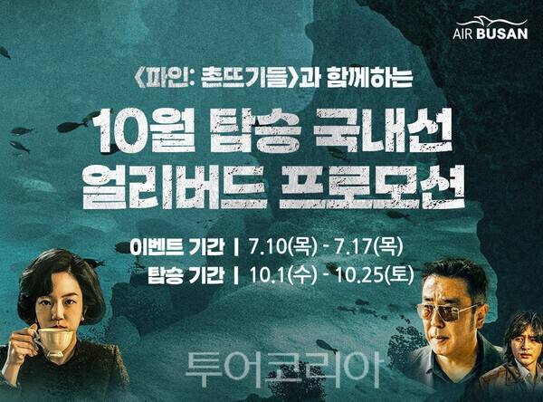 에어부산은 이달 16일 공개 예정인 디즈니+ 오리지널 시리즈 <파인: 촌뜨기들>과 연계한 경품 이벤트도 준비했다.