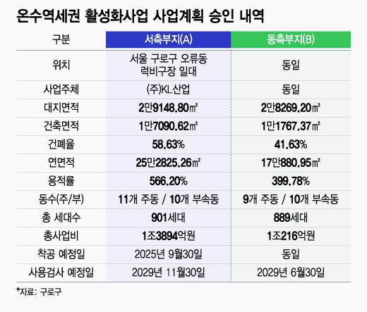 14일 정비업계에 따르면 구로구청은 온수역세권 내 특별계획구역 A블록(서측부지)과 B블록(동측부지)에 대한 주택건설사업계획을 지난 9일 최종 승인했다. 시행은 서해종합건설의 100% 자회사인 KL산업이 맡았고 시공은 서해종합건설이 담당한다. 두 부지를 합한 총 가구수는 1790가구로, 당초 계획됐던 1821가구보다 소폭 조정됐다.