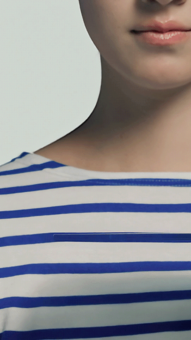 영상을 보면 파란 스트라이프 티셔츠를 입은 여성의 상체가 3초간 비춰진다. 이후 천천히 줌아웃되더니, 티셔츠 줄무늬 사이에 가려져있던 갤럭시Z폴드7가 나타난다. 갤럭시Z폴드7가 옷 줄무늬에 가려질 만큼 얇다는 것을 강조한 것이다.