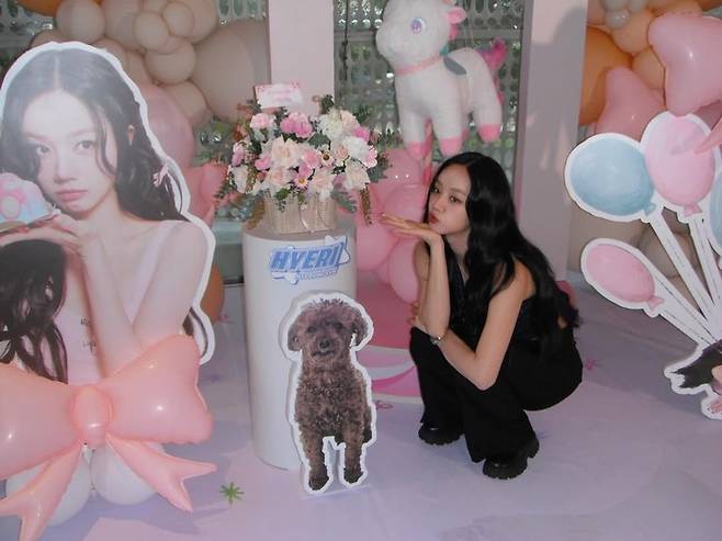 마지막 컷에서는 팬미팅 이벤트 공간에서 촬영된 것으로 보인다. 분홍빛 풍선과 오브제들로 꾸며진 공간에서 혜리 특유의 귀여움과 발랄한 분위기가 강조된다.