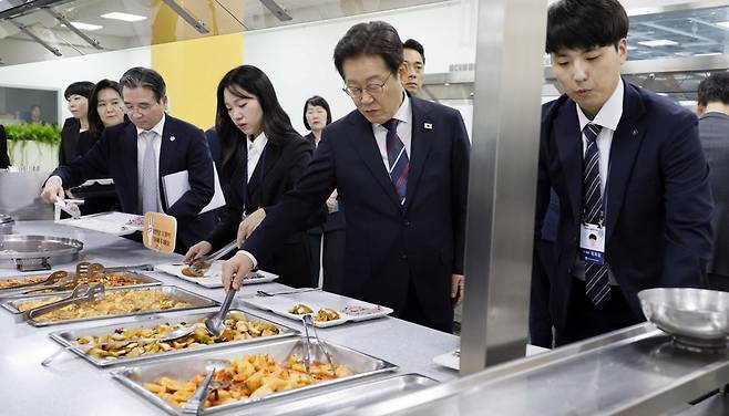 이재명 대통령이 14일 충북 진천 국가공무원인재개발원에서 70기 5급 신임관리자과정 교육생들에게 '국민주권시대, 공직자의 길'을 주제로 특강을 마친 뒤 구내식당에서 오찬을 하고 있다.
