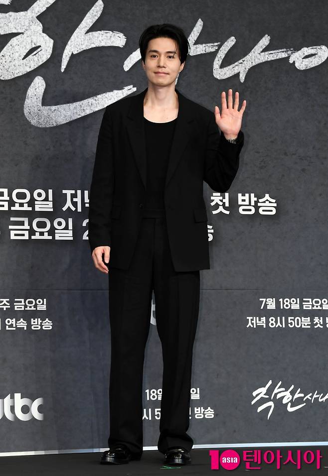 배우 이동욱이 14일 서울 구로구 신도림 더 링크 호텔에서 열린 JTBC 새 금요시리즈 <착한 사나이> 제작발표회에 참석해 포즈를 취하고 있다. 착한>