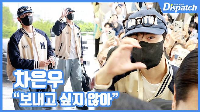 차은우의 마지막 출국길인 만큼 이날 공항에 수많은 팬들이 몰려 인산인해를 이뤘다.