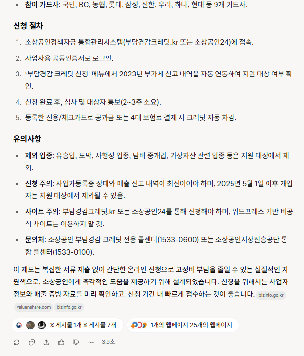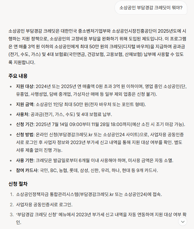 그록 답변: 소상공인 부담경감 크레딧은 대한민국 중소벤처기업부와 소상공인시장진흥공단이 2025년도에 시행하는 지원 정책으로, 소상공인의 고정비용 부담을 완화하기 위해 도입된 제도입니다.