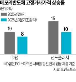 제품별로는 2분기에 가격이 변하지 않은 AI 서버용 솔리드스테이트드라이브(SSD)가 3분기에 5∼10% 상승할 것으로 전망됐다. 소비자용 SSD는 3분기 신형 PC 수요가 살아나며 같은 기간 3∼8% 가격이 오를 것으로 예상된다. 스마트폰용 eMMC·UFS 가격은 0∼5% 상승할 것이란 관측이 나온다.