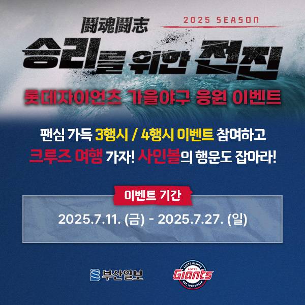 부산일보는 프로야구 롯데자이언츠의 포스트시즌 진출을 응원하는 ‘롯데자이언츠 가을야구 응원 이벤트’를 진행한다.