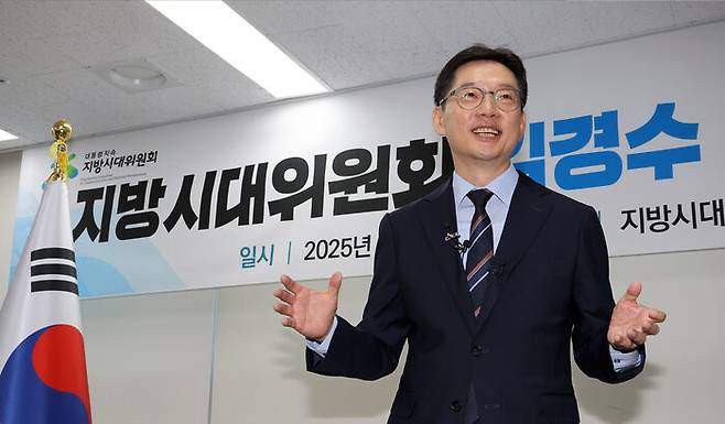 ▲ 김경수 지방시대위원장이 10일 세종시 지방시대위원회에서 취임식을 마친 뒤 기자들과 간담회를 열고 있다.