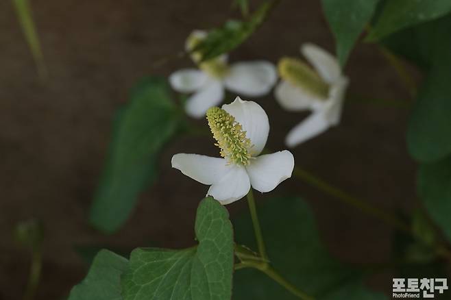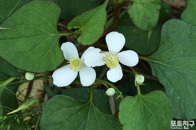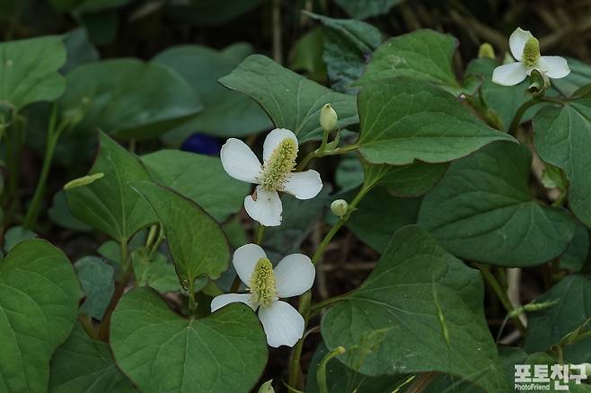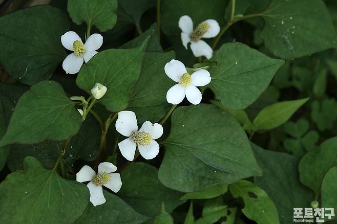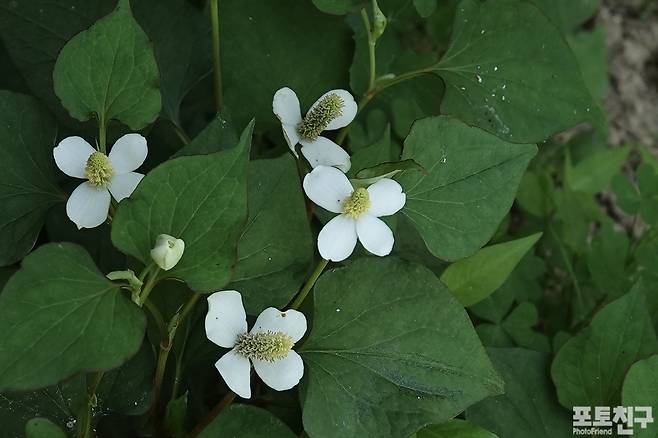 특이한 냄새 물고기 비린내가 나는 어성초 꽃입니다.