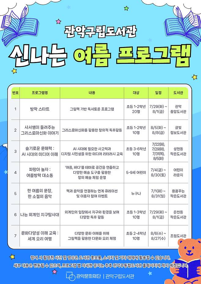 ■ 관악구립도서관, 여름방학 프로그램 운영