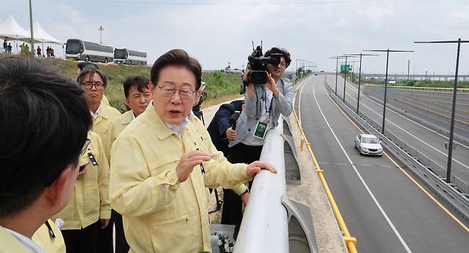 | ▲ 이재명 대통령이 오송 참사 2주기를 앞두고 14일 충북 청주시 오송읍 궁평2지하차도를 방문해 안전 점검을 하고 있다. 지난 2023년 7월 15일 오송 궁평2지하차도에서는 인근 미호강이 범람하며 침수되는 사고가 발생해 14명이 숨졌다. 2025.7.14 [대통령실통신사진기자단] |