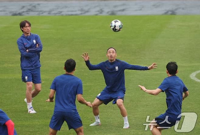 (성남=뉴스1) 김영운 기자 = 2025 동아시아축구연맹(EAFF) E1 챔피언십(동아시안컵) 한일전을 앞둔 대한민국 축구 국가대표팀 선수들이 14일 오후 경기 성남시 중원구 성남종합운동장에서 훈련을 하고 있다.