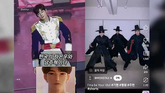 그룹 몬스타엑스의 형원, 기현, 주헌도 사자 보이즈 '유어 아이돌'(Your Idol)을 실사 안무로 소화한 영상을 올려 틱톡 조회수 960만 회를 기록했습니다.