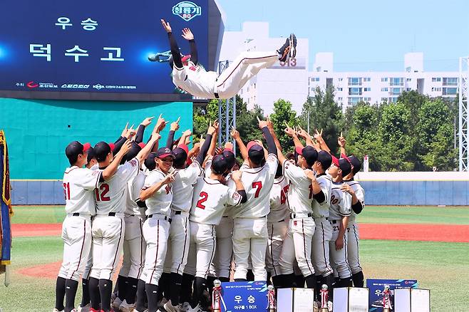 지난해 '고교 최강'으로 평가받던 전력이 졸업하면서 위기에 놓였다는 평가도 있었지만, '덕수불패'를 증명했다. 정윤진 감독이 "많이 흔들렸지만, 역시 덕수고등학교는 덕수고등학교라는 생각이 든다"고 말했다.