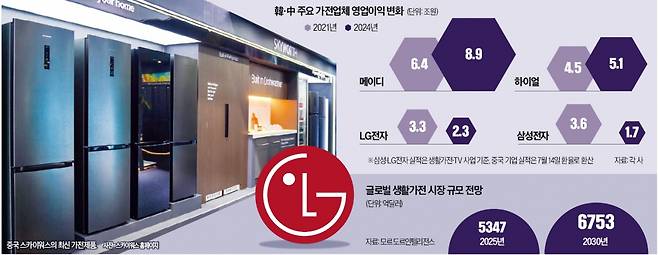 같은 기간 프리미엄 가전시장만 노크한 LG전자는 정반대 길을 걸었다. LG전자 생활가전·TV 부문(H&A, HE사업본부) 영업이익은 지난해 2조3600억원으로, 2021년(3조3000억원)보다 약 29% 줄었다. 프리미엄 시장이 정체된 상황에서 중저가 시장을 중국 업체에 내준 결과다. LG전자가 중국 가전업체와 손잡고 중저가 시장 공략에 나선 이유다.