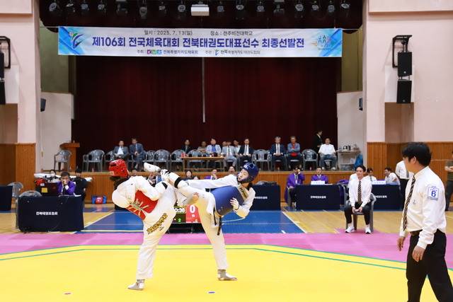전북특별자치도태권도협회(회장 고봉수)는 지난 13일 전주비전대학교 나래관에서 ‘제106회 전국체육대회 전북태권도 대표선수 최종선발전’을 개최했다.