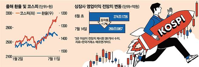 달러 가치가 특정 국가의 유불리와 유리된 상태에서 횡보하자 글로벌 자금이 환율 리스크에서 벗어나 움직이는 양상이다. 덕분에 이사의 충실의무 확대 등 신정부가 추진하는 자본시장 개선책들이 원동력이 돼 국내 증시가 환율의 변동성과는 무관하게 오를 수 있었다.