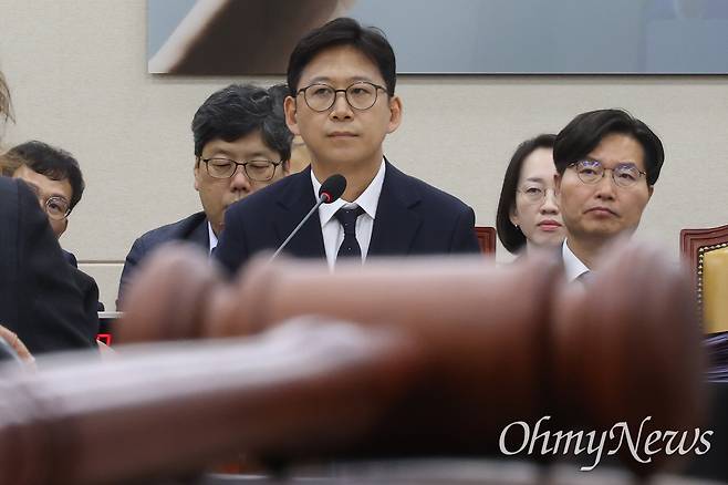 | ▲ 배경훈 과학기술정보통신부 장관 후보자가 14일 오후 서울 여의도 국회 과학기술정보통신위원회 전체회의에서 열린 인사청문회에 출석해 폐업한 회사에서 전문연구요원으로 근무하며 병역 기간에 산입한 것 아니냐는 박정훈 국민의힘 의원의 질의를 듣고 있다. |