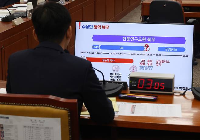 특히 국민의힘 의원들은 배 후보자가 전문연구위원으로 석박사 과정을 병행하면서 이른바 '스펙 쌓기' 등 부실 복무를 따져 물었고, 배 후보자는 "병무청 승인을 받았다"고 맞섰다. 또 병역특례 기간동안 복무한 회사에서 받은 연봉(4100만 원)이 과다하게 지급된 것 아니냐는 지적에도, "업무량에 따른 보상이었다"고 반박했다.