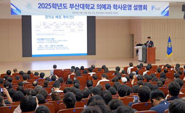 부산대는 지난 13일 부산캠퍼스 학생회관에서 ‘2025학년도 의예과 학사운영 설명회(사진)’를 열었다고 14일 밝혔다. 의과대학이 주관한 이날 설명회에는 의예과 23, 24, 25학번 학생과 학부모, 22학번(의학과 1학년) 일부 학생 등 450여 명이 참석했다.
