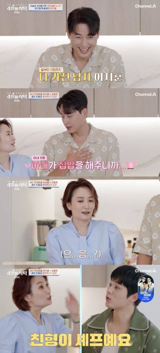 14일 방송된 채널A 교양 프로그램 '절친 토큐멘터리 - 4인용식탁'(이하 4인용식탁)에서는 이지훈이 가수 김동준, 선예를 초대하는 모습이 그려졌다.