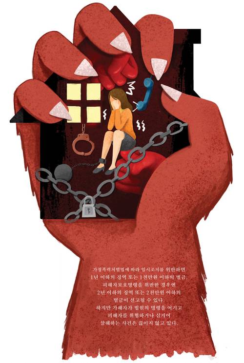 가정폭력처벌법에 따라 임시조치를 위반하면 1년 이하의 징역 또는 1천만원 이하의 벌금, 피해자보호명령을 위반한 경우엔 2년 이하의 징역 또는 2천만원 이하의 벌금이 선고될 수 있다. 하지만 가해자가 법원의 명령을 어기고 피해자를 위협하거나 심지어 살해하는 사건은 끊이지 않고 있다.