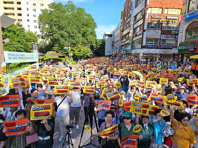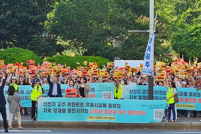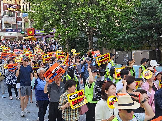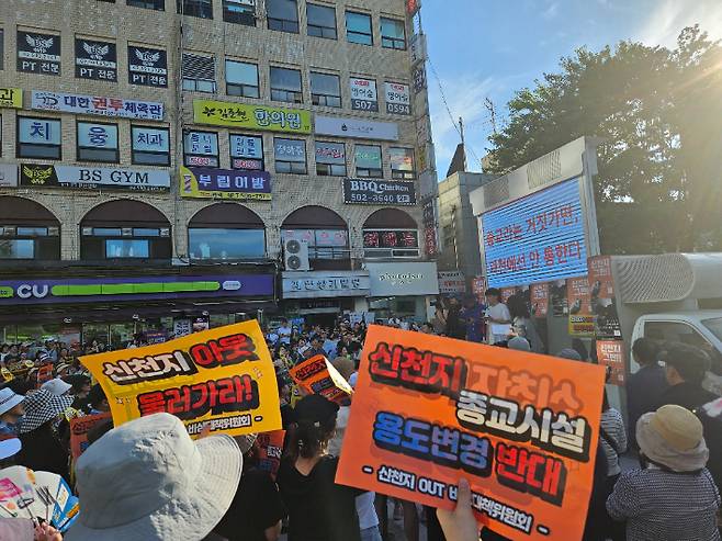 지난 주말 폭염 속에도 1천 여명이 넘는 시민들이 거리로 나서 '신천지 종교시설 용도변경'을 반대한다고 외쳤습니다.