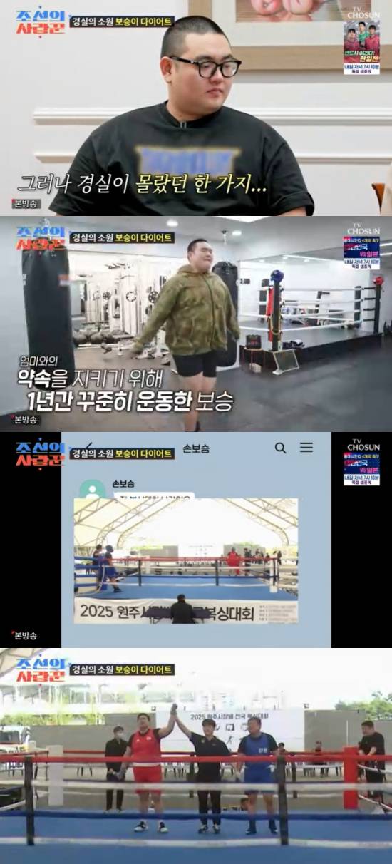 특히 손보승은 다이어트를 하기 위해 복싱장에 다녔고, "사실 작년 7월부터 복싱을 시작했다. 대리운전하기 전에 하고 끝나고 하고. 되게 열심히 꾸준히 계속 열심히 했다"라며 밝혔다.