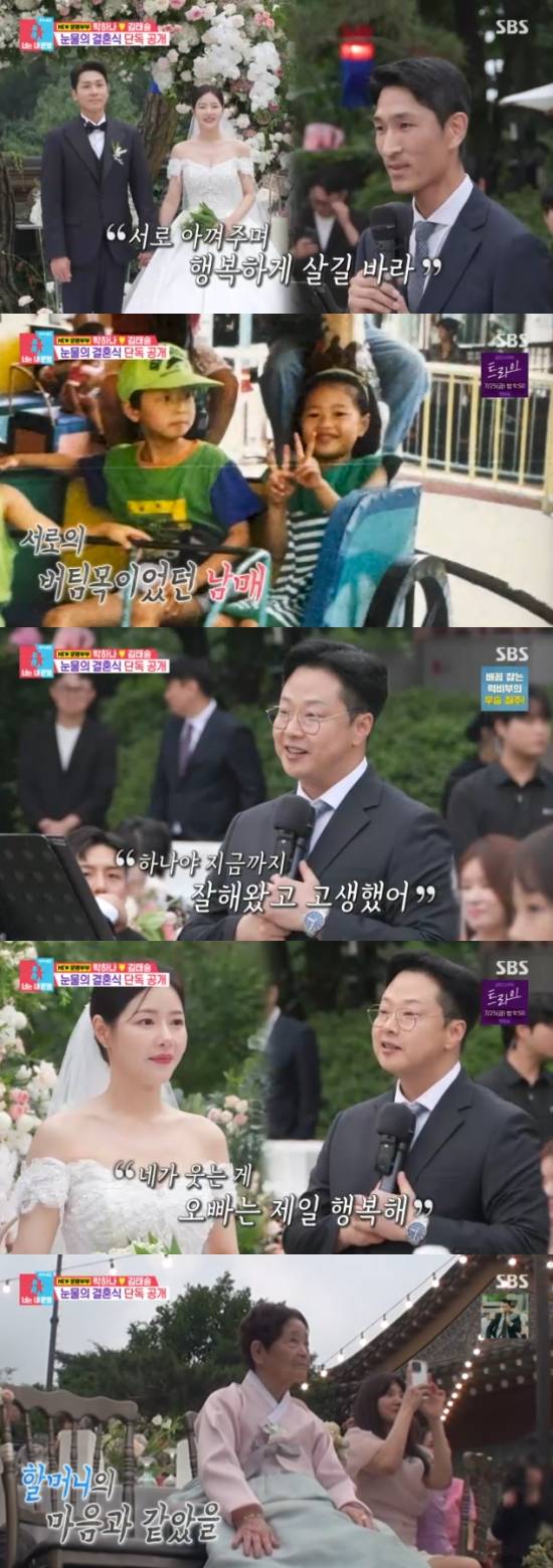 오빠는 동생 박하나에게 "지금까지 잘 해왔고, 고생했어. 너가 웃는게 오빠는 제일 행복해. 오늘 제일 예쁘다"라고 진심어린 축사로 모두를 눈물 짓게 만들었다. 그리고 결혼식 말미 김태술은 "사랑한다. 하나야"를 우렁차게 외치며 마무리했다.