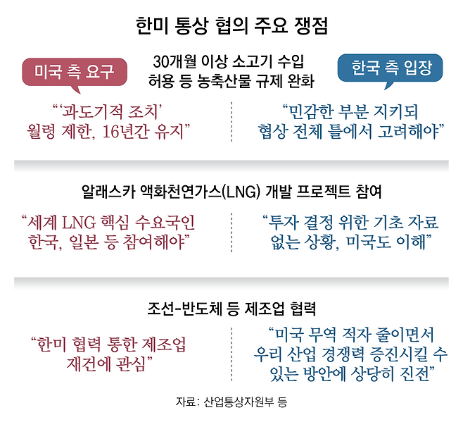 미국은 우리와의 관세 협상 과정에서 쌀·소고기·과일 시장 개방, 디지털 교역 확대 등을 요구하는 것으로 전해진다. 소고기 30개월 월령 제한 완화는 우리가 미국 측에 제시할 수 있는 유력한 카드로 꼽힌다. 정부 관계자는 “관련 규제는 전 세계에서 사실상 한국만 가지고 있다고 봐도 된다”며 “미국 측은 우리가 이를 철폐하면 소고기를 수출하는 과정에서 검역 등 관련 절차를 없애고 상당한 비용을 절감할 수 있다고 주장하고 있다”고 설명했다.