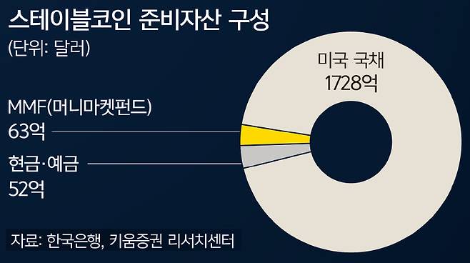 스테이블코인은 가격 변동이 극심한 가상화폐와 달리 원화, 달러 같은 법정화폐 등에 일대일로 가치를 고정시킨 안정적인 암호화폐다. 법정화폐뿐 아니라 가상화폐 담보, 알고리즘 기반도 있다. 2022년 일주일 만에 450억달러의 시가총액이 증발한 테라-루나가 알고리즘 기반 스테이블코인이었다. 이 때문에 스테이블코인을 법제화한 나라들은 알고리즘 기반을 금지하고 발행량에 상응하는 준비금을 일대일로 예치하도록 하고 있다. 고객이 현금으로 인출하고 싶을 때 곧바로 지급할 수 있도록 한 것이다.