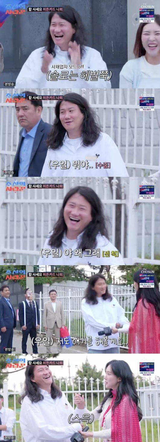 함잡이들이 김지민의 본가로 향하는 길, 임우일은 다른 함잡이들로부터 미인계에 약할 것 같다는 이야기를 듣자 “사랑? 개나 줘버려”라며 의지에 불타는 모습을 보여 웃음을 자아냈다.