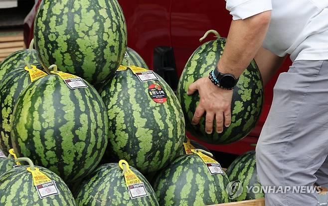 서울 마포의 한 과일가게 주인은 "이달 초만 해도 수박 8㎏짜리를 2만8천∼2만9천원 받았는데 지금은 3만7천원에 판다"고 말했다.
