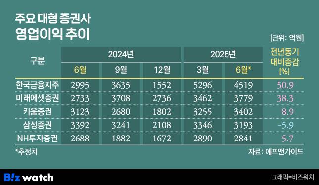 '불장'에 함박웃음 지은 대형증권사…삼성증권 홀로 부진 전망