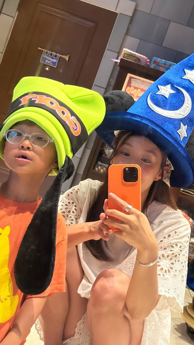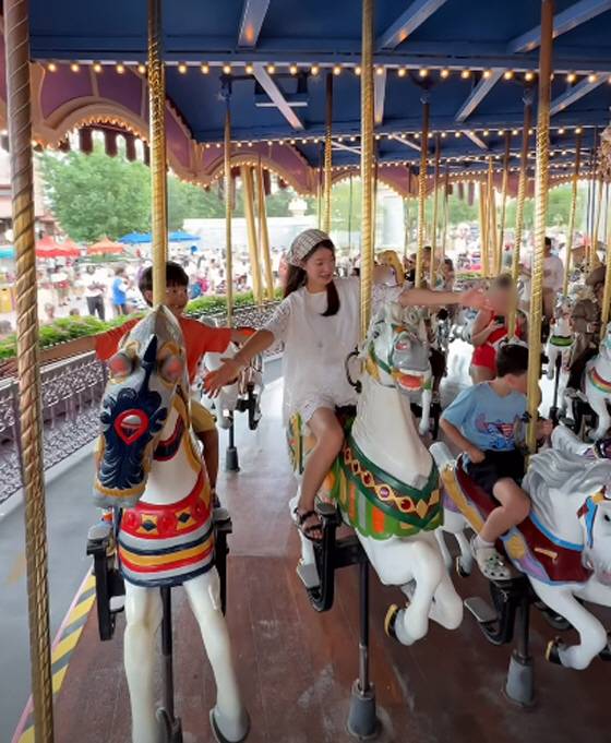 사진 속에는 아들 정윤 군과 함께 미국 디즈니랜드에서 즐거운 시간을 보내고 있는 이시영의 모습이 담겨있다.