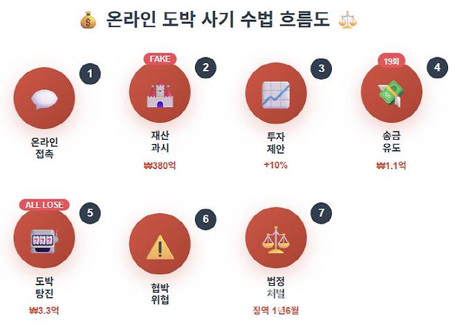 서울중앙지방법원 형사7단독 장수진 판사는 지난달 “상습으로 도박을 하고, 허위로 재력을 과시하여 도박자금을 빌린 후 이를 갚지 않고 오히려 변제를 독촉하는 피해자를 협박하는 등 죄질이 매우 좋지 않다”며 A씨에게 징역 1년 6개월을 선고했다. 특히 A씨가 이전에도 동종 사기죄로 벌금형 1회, 징역형 집행유예 1회를 받은 전력이 있다는 점을 지적하며 “상습성이 인정된다”고 판단했다.
