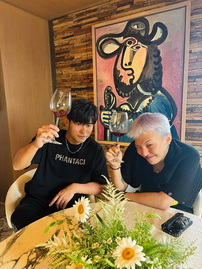 공개된 사진 속 주걸륜은 지드래곤과 함께 와인잔을 들고서 인증샷을 찍는 모습이다.