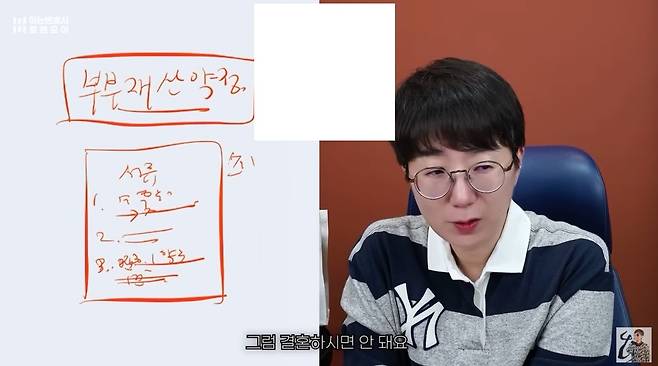 그는 결혼 전 재산을 특유재산으로 한다는 항목을 언급하며 "나중에 재산분할 대상이 되지 않는다고 적어라. 또 (전처와 아이) 양육과 면접 교섭 등도 적어라. 이걸 쓰기 싫어하면 결혼하면 안 된다"라고 언급한 바 있다.