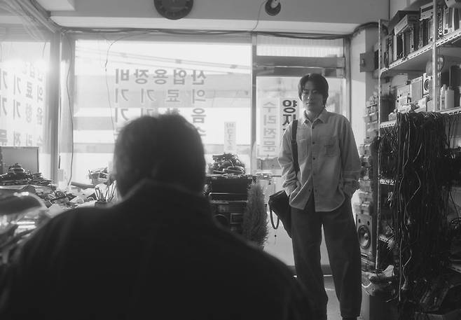 공개된 스틸 컷에는 작은 수리 공방에서 마주한 여자(김고은)와 남자(구교환)의 모습이 담겼다.