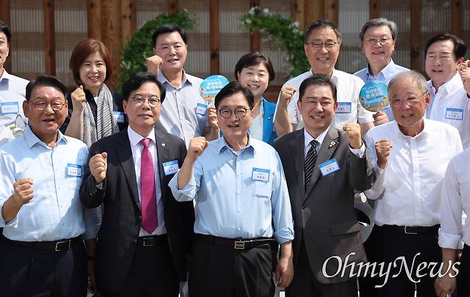 | ▲ 우원식(아래 왼쪽 세번째) 국회의장이 지난 8일 오전 서울 여의도 국회 사랑재에서 열린 K-바캉스 캠페인에서 송언석 국민의힘 비상대책위원장 겸 원내대표와 김병기 더불어민주당 당대표 직무대행 겸 원내대표 등 참석자들과 기념촬영을 하고 있다. |