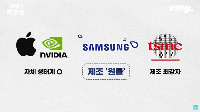 유명한 일화가 있죠. 애플에서 설계도를 가지고 왔는데 이 설계도가 잘못됐던 거예요. 그럴 때 TSMC는 '야, 이거 너희가 설계도 잘못했으니까 다시 해 갖고 와' 이렇게 하지 않는다고 해요. 자기네 기술자를 애플 본사로 파견을 보내서 어떻게 설계를 해야 실제 생산을 할 때 제대로 나올지를 같이 연구한다고 합니다.