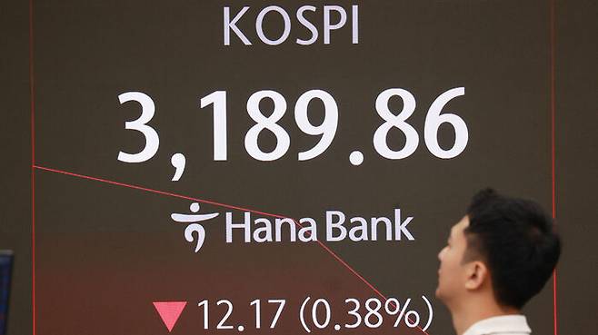오전 9시 2분 기준 코스피 지수는 전장보다 13.30포인트(0.42%) 내린 3,188.73입니다.