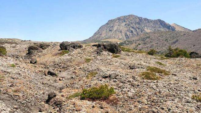 ▲ 한라산 모세왓 유문암질 각력암 지대 전경