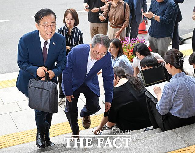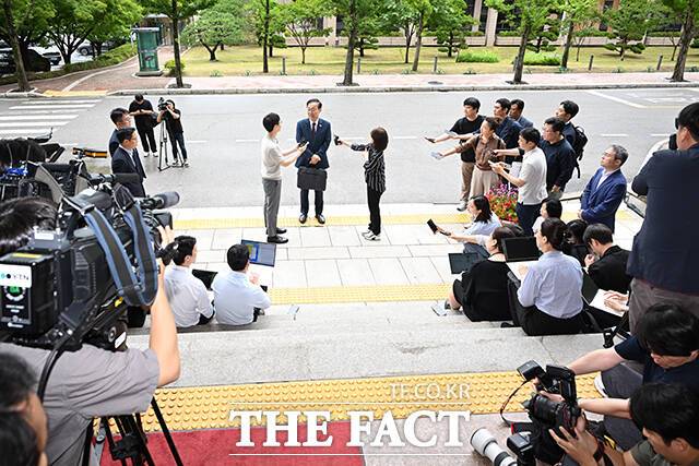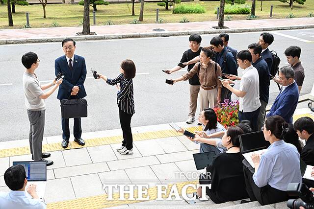 [더팩트ㅣ과천=장윤석 기자] 김윤덕 국토교통부 장관 후보자가 15일 오전 경기 과천시 정부과천청사에 마련된 인사청문회 준비 사무실로 첫 출근하며 취재진 질문에 답하고 있다.