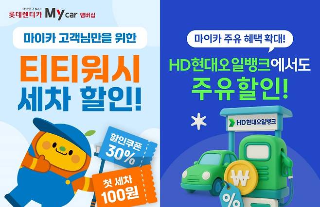 먼저, 롯데렌터카 My car(마이카) 멤버십 혜택으로 HD현대오일뱅크 주유 상시 할인 서비스가 새롭게 추가했다.